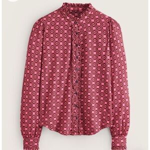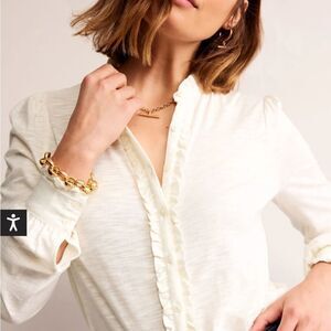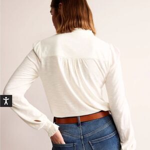 The eternal appeal of a long-sleeve shirt is undeniable, so we’ve created a new iteration to add to your roster. This one’s cut from soft jersey with a high neckline and ruffled trims for added flair. less