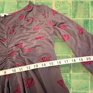 Boden Grey Pink Flamingo Print Ruched Bust Mini Dress Size 16R