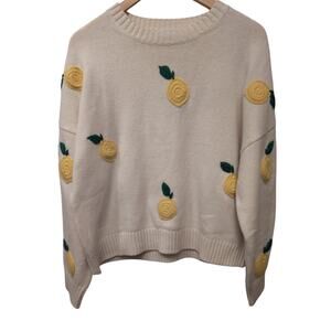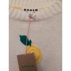 Boden Hand Embroidered Sweater Warm Ivory Lemons Fall Vacation Preppy Citrus
