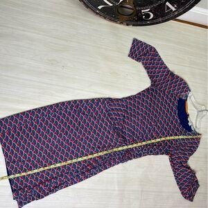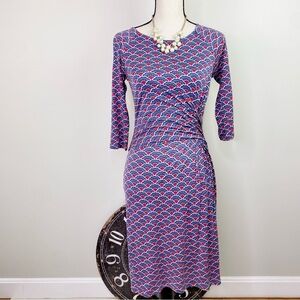 Boden Harper Stretch Knit Faux Wrap Day Dress blue cream pattern size 6