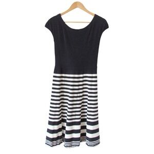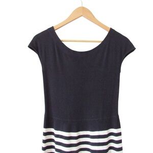 Boden Harriet Knitted Navy Blue White Stripe Dress 6 US Short Sleeves Fit Flare