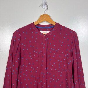 Boden Hayley Dot Print Button Front Shirt Top Red Long Sleeve size 4