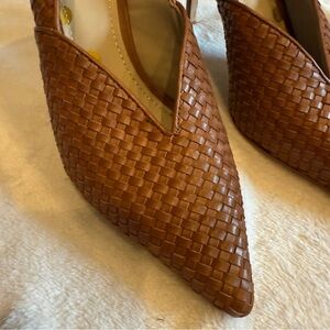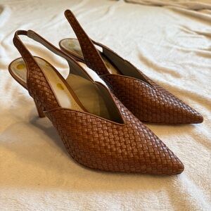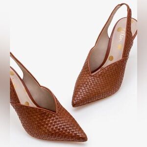 Boden Hazel Leather Woven Heels Pumps Point Toe Stiletto Slingback Brown