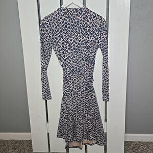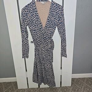 Good Condition, Boden, Blue Heart Beige Wrap Dress, Stretch, US, 6 Regular