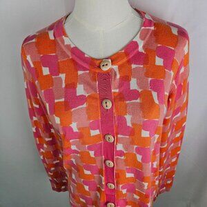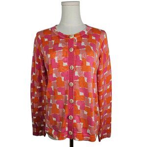 Boden Hearts Cardigan US 8 M Orange Pink Lightweight Colorful Maximalism