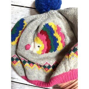 Mini Boden knit winter hat with blue pompom and hedgehog appliqués. Size S which correlates to 5-8 years old. VGUC, it was worn but I don't see any issues.