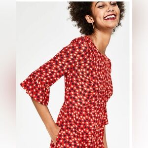 Boden Hyacinth Scattered Stars Casual Midi Knee Length Dress, Red, Size 8