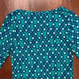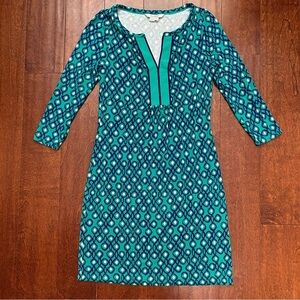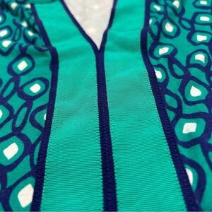 Boden Isobel Blue Geometric Tunic Dress with Grosgrain Ribbon Neckline, Size 2