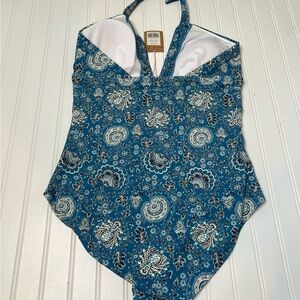 Boden Ithaca Halter Swimsuit One Piece Women's Blue US 14L Long Tall NEW