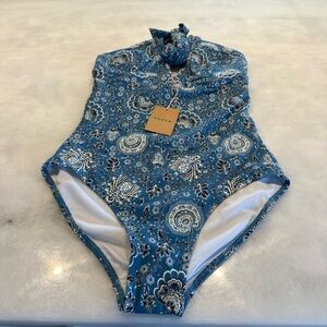 Boden Ithaca Halter Swimsuit One Piece Women's Blue US 6L Long Tall NEW