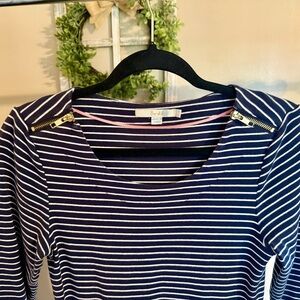 Boden Janie Day Striped Dress with shoulder zipper detail Size 8