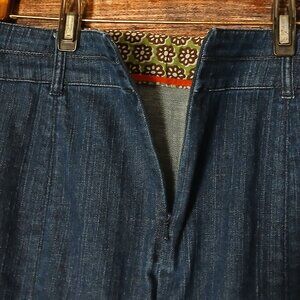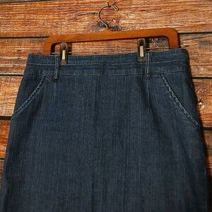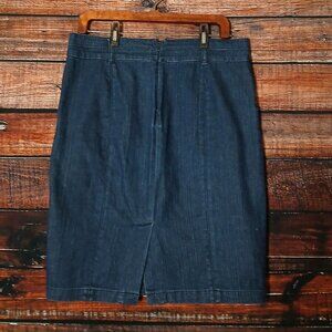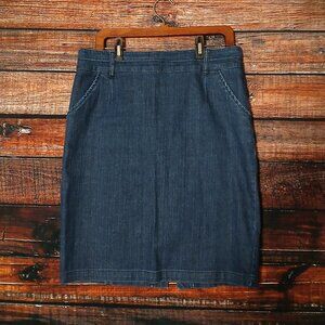 Boden Jean Skirt 14 Straight Pencil Dark Wash Denim Pockets Zip Back Stretch