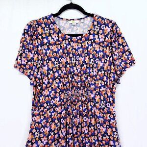 Boden Jersey Dress Size US 12 Cluster Floral Print Gathered Front Mini