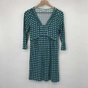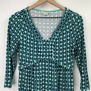 Boden Jersey Knit Mini Dress A Line Geometric Pattern Blue Green Womens 6