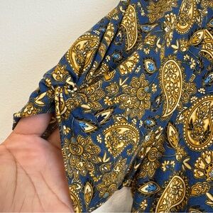 Elevate your wardrobe with this stunning paisley print dress. Featuring a beautiful blend of blue and gold, this dress is perfect for any occasion. Enjoy the comfort and style it brings to your day.