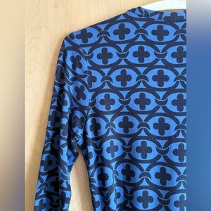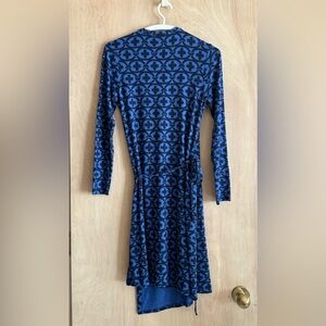 Boden Jersey Wrap Midi Dress Blue Black Print Long Sleeve Sz 6P