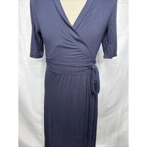 Boden Joanna Wrap Dress Size US 10 UK 14 Navy Blue Short Sleeve Midi