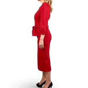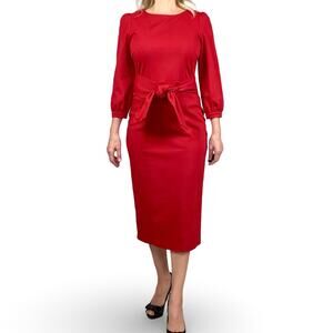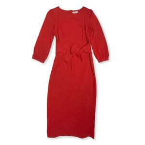 Sophisticated Boden Josephine ponte dress in bold red — a versatile piece for career, holiday, and fall wardrobes. Tailored fit with adjustable tie waist and puffed ¾ sleeves ensures comfort with style.