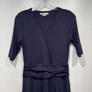 Boden Kassidy Jersey Midi Dress Women’s Size 4 Navy Blue V Neck Pockets Stretch