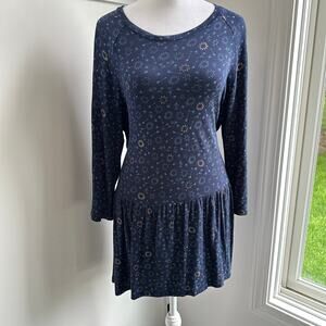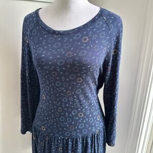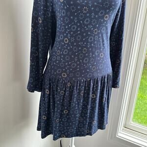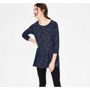 Boden Katrina Jersey Tunic Blue Star Print Pleated Long Sleeve Sz Small