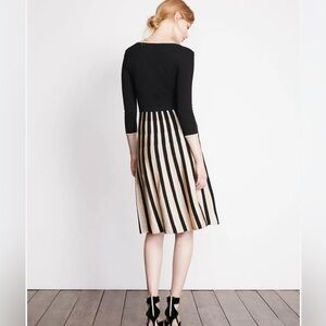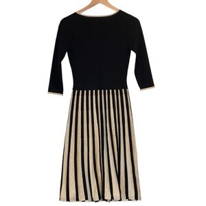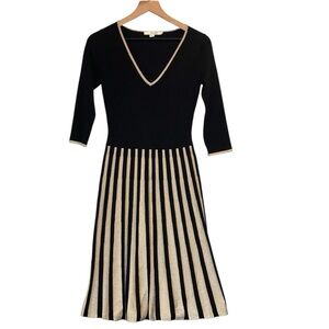 Boden Keira Black/Metallic Gold Midi Knit Dress, V Neck,Fit/Flare, US 2, Holiday