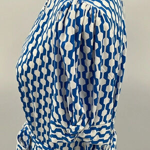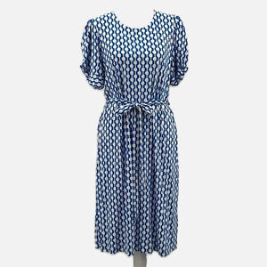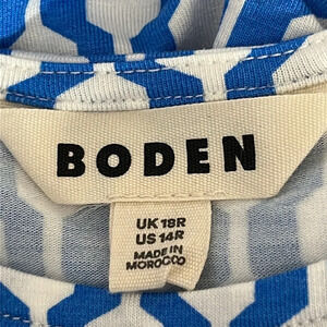 Boden Knot Detail Jersey Knit Geo Print Dress in Azure Blue & White - NWOT - 14R