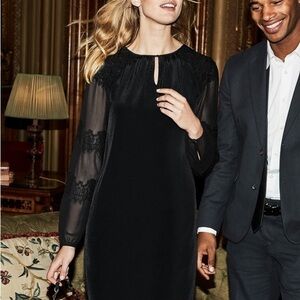 Boden LBD Sasha Whimsigoth Sheer Sleeves w Appliqué Lace Dress Size 10 LONG