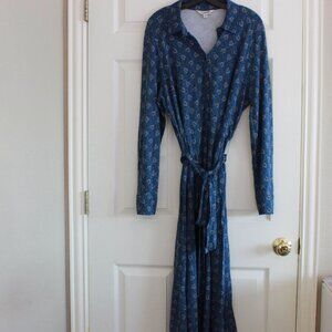 Boden Laura Jersey Midi Shirt Dress Blue Printed