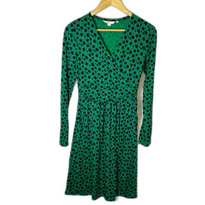Boden Layla NWOT Green Navy Floral Jersey Surplice Neck Long Sleeve Midi Dress 2