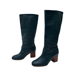 Boden Leather Knee-High Boots EU Size 38 US Size 8.5 Dark Blue Block Heel