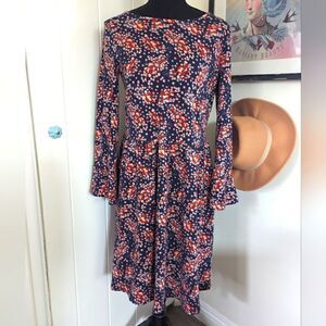 Boden Leaves Floral Preppy Academia Countryside Cottagecore Keyhole Dress 6