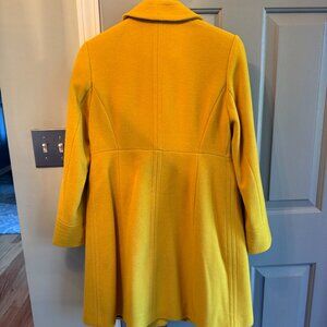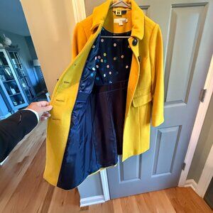 Gorgeous, happy yellow wool/polyester/cashmere blend coat with beautiful silky spotted lining. Amazing Boden quality. Worn only a handful of times.
