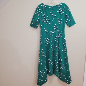 Boden Leonie Jersey dress Womens Size 4P Petite forest green Floral Fit & Flare