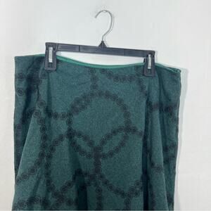 Boden Libby Green Black Circle Wool Blend A Line Skirt Size 14 Long