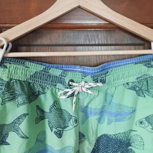 Boden Light Green Fish Print Mesh Liner Swim Trunks Size 36