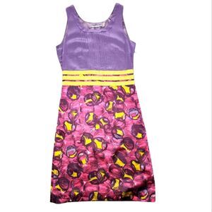 Charming dress featuring a vibrant purple top and a playful pink skirt. Perfect for any occasion