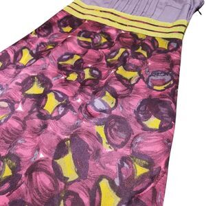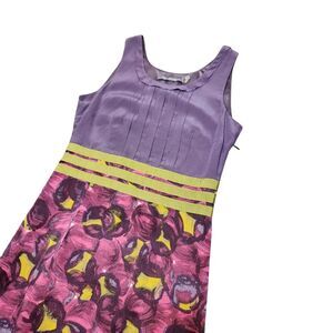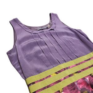Boden Limited Edition Silk Dress Sleeveless Short Sheath Purple Pink Floral Lined Pleated Ribbon Trim