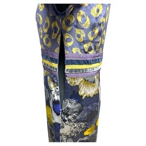 This elegant dress features a vibrant floral print with striking yellow and blue accents. Perfect for any occasion, it combines style and comfort effortlessly.