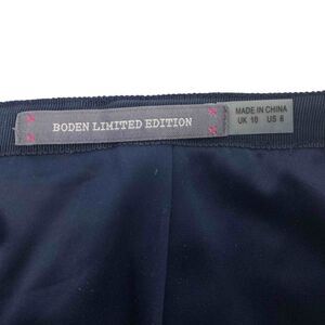 Boden Limited Edition size 6 navy and gold cut out skirt. Gross grain ribbon waistband. Center back zipper with ribbon pull. Front and back darts.