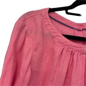 Boden Linen Blouse Size 8 Pink Scoop Neck Button Up Back 3/4 Sleeve