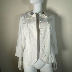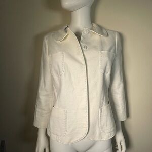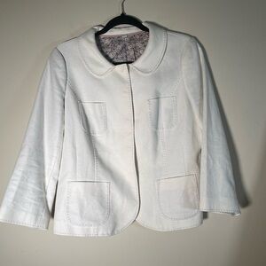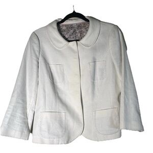 Boden Linen Cotton Lady Jacket Blazer Winter White Peter Pan Collar Sz 10