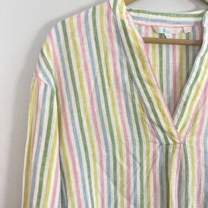 Boden Linen Pastel Rainbow Striped Tunic Top
