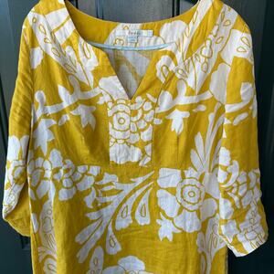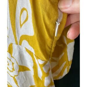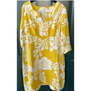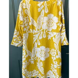 Boden Linen Shift Dress 10L Yellow White Floral 3/4 Sleeve Summer Resort Beachy
