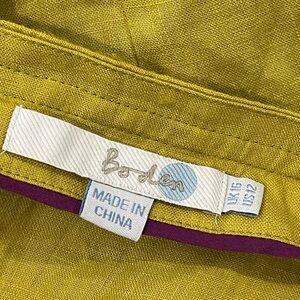 Boden Linen Shortsleeve V-Neck Tunic Top Size 12 Chartreuse