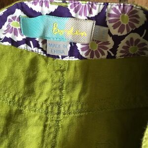 Boden Linen mini skirt women’s SZ 6 front and back pockets button zip green