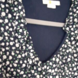 Step out in style with this chic long sleeve dress featuring a delightful floral design. The navy color adds a touch of elegance, making it perfect for any occasion. Ruffled neckline and hem. size 8