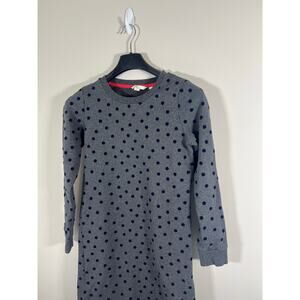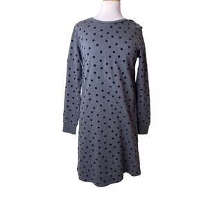 Boden Long Sleeve Grey Navy Polka Dot Dress 100% Cotton Size 4 Womens Small