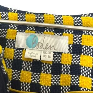 boden coat, boden check jacket, boden longline coat, womens size 16 coat, navy yellow check coat, tweed coat boden, fall winter coat womens, classic statement coat, boden outerwear, textured check coat
