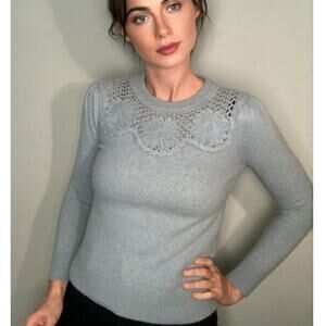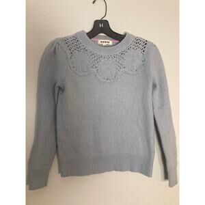 Boden Lovely Floral Crochet Light Blue Knit Sweater Mid-weight Cottagecore~ Sz S