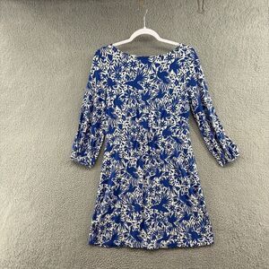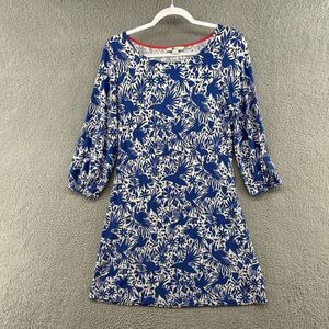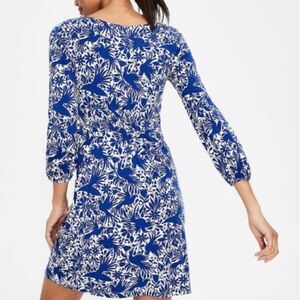 Boden Lucie jersey tunic lapis bird ottomi dress 3/4 sleeve elastic waist size 8